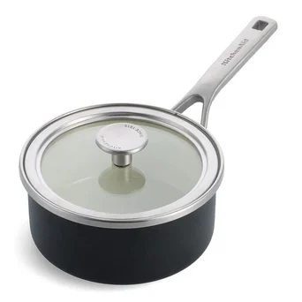 Czarny matowy emaliowany rondel KitchenAid o słusznej pojemności 2,4L z wielowarstwową emalią, która jest w 100% naturalna - tym samym nie wpływa na smak przygotowywanych potraw. Kolor rondla idealnie pasuje do miksera planetarnego KitchenAid w kolorze Matte Black. W komplecie także solidna pokrywka ze szkła hartowanego ze stalową ramką i wygodnym uchwytem ze stali nierdzewnej.
