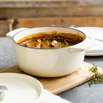 - odporność na wysokie temperatury (do 260ºC) pozwala na użytkowanie garnka w piekarniku,