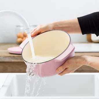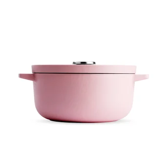 Różowy emaliowany garnek żeliwny o pojemności 3,3L to połącznie elegancji, wyrafinowanego stylu i wysoko cenionych właściwości termicznych żeliwa. Idealnie sprawdzi się przy smażeniu, duszeniu i długotrwałym gotowaniu na małym ogniu oraz pieczeniu. Dzięki odporności na temperaturę do 260ºC może być także używany w piekarniku. Kolor garnka idealnie pasuje do miksera planetarnego KitchenAid w kolorze Dried Rose. W komplecie także solidna żeliwna pokrywka z wygodnym uchwytem ze stali nierdzewnej. Nie nadaje się do mycia w zmywarce.