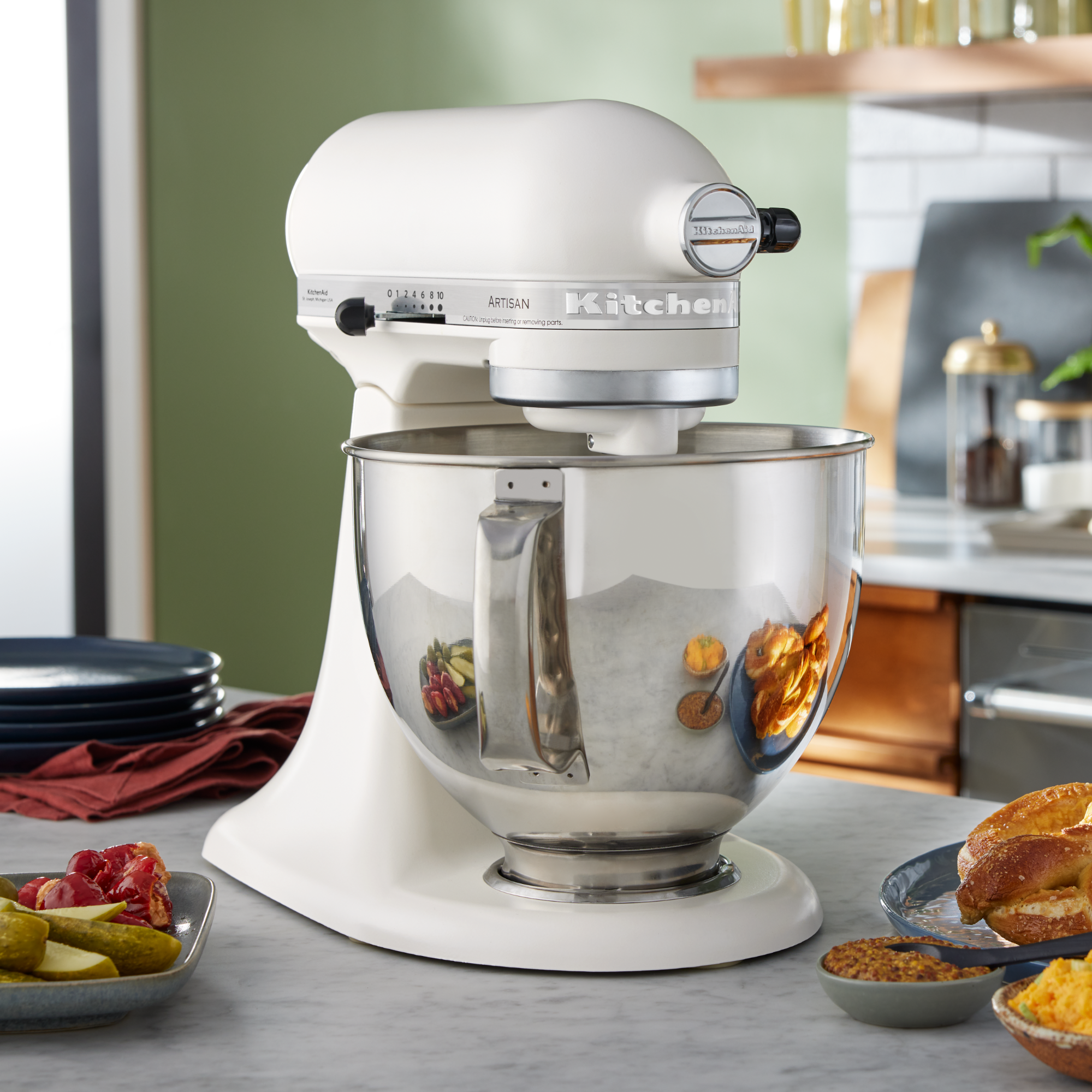 Mikser Artisan 5/175 KitchenAid, to jedna z wersji najpopularniejszego domowego modelu z uchylną głowicą. Charakteryzuje się najbogatszym wyposażeniem standardowym. Jest rekomendowany nie tylko do wyrobu wszelkich ciast z drożdżowym na czele, ale dzięki szerokiej gamie opcjonalanych przystawek także do tarcia, mielenia, przecierania i wałkowania oraz innych żmudnych czynności, zwykle dotąd wykonywanych ręcznie.