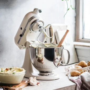 Mikser Artisan 5/175 KitchenAid, to jedna z wersji najpopularniejszego domowego modelu z uchylną głowicą. Charakteryzuje się najbogatszym wyposażeniem standardowym. Jest rekomendowany nie tylko do wyrobu wszelkich ciast z drożdżowym na czele, ale dzięki szerokiej gamie opcjonalanych przystawek także do tarcia, mielenia, przecierania i wałkowania oraz innych żmudnych czynności, zwykle dotąd wykonywanych ręcznie.