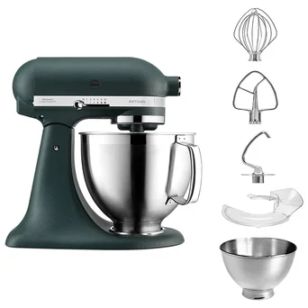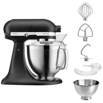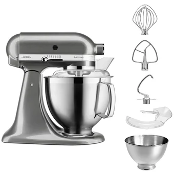 Mikser Artisan, gwiazda stuletniej amerykańskiej marki KitchenAid i światowy lider w kategorii wielofunkcyjnych mikserów kuchennych, każdego roku zmienia swój wizerunek, prezentując się w nowych wersjach kolorystycznych i rodzajach lakieru oraz wyposażenia. Ma eleganckie, chromowane detale, oraz narzędzia wykonane ze stali nierdzewnej. Jego misa (4,8L) jest efektownie zdobiona od zewnątrz, przez częściowe szczotkowanie. Można w niej wygodnie przechowywać dodatkową misę 3L, która wzbogaciła wyposażenie.