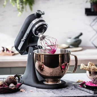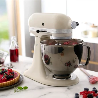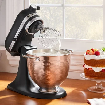 Dzieża ze stali nierdzewnej (INOX) o pojemności 4,8L, ozdobnie wykończona. Pasuje do wszystkich modeli mikserów z uchylną głowicą (serii Artisan 5 i Classic oraz 5KSM95). Ma wygodną, ergonomiczną rączkę i można ją myć w zmywarce.