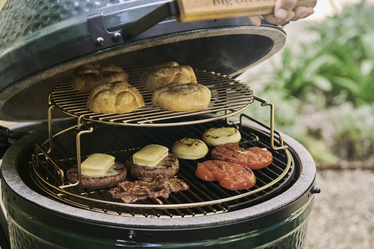 System EGGspander Kit otwiera zupełnie nowe możliwości gotowania na wielu poziomach jednocześnie. Dwuczęściowy ruszt wielopoziomowy Multi Level Rack podnosi część powierzchni gotowania, tworząc dodatkowe piętro w kamado. Dzięki temu można jednocześnie przygotowywać różne składniki na różnych wysokościach – na przykład mięso na dolnym poziomie i warzywa w patelni na górnym.