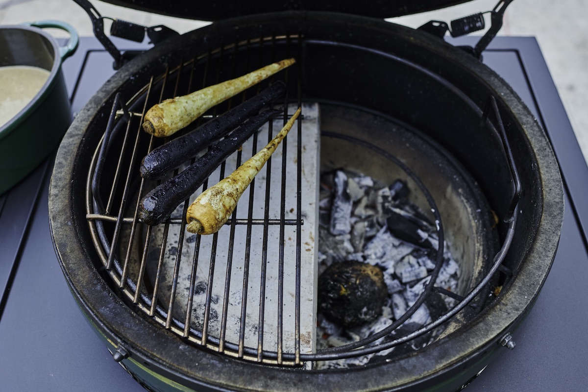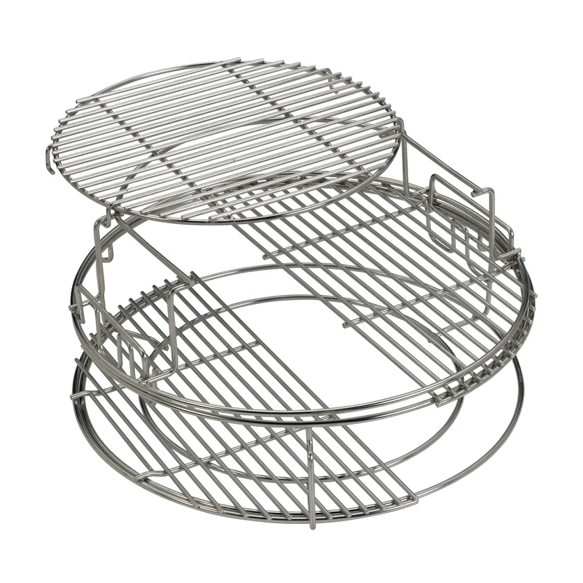 Dwie połówki rusztu stalowego zawarte w zestawie pozwalają na niemal nieograniczone kombinacje konfiguracji. Można je umieścić w koszyku convEGGtor na różnych wysokościach, łączyć z połówkowymi kamieniami convEGGtor, lub używać niezależnie do dzielenia powierzchni gotowania na strefy bezpośredniego i pośredniego ciepła.