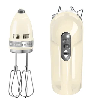 Cały mikser ręczny jest skonstruowany w bardzo przemyślany sposób, ułatwiający korzystanie z niego i zapewniający niespotykaną u konkurencji ergonomię. Obrotowa końcówka przewodu zasilającego, przyjemne w dotyku antypoślizgowe uchwyty i kształt ułatwiający odstawianie urządzenia na blacie, to tylko niektóre z zalet ręcznych sprzętów marki KitchenAid.