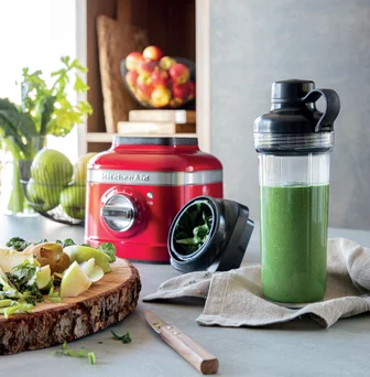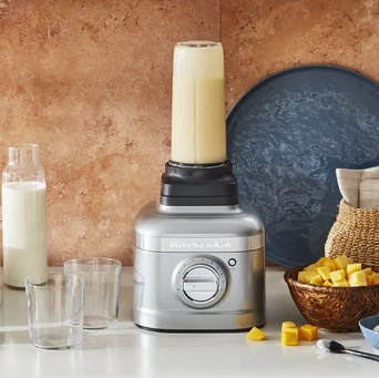 Zestaw praktycznych naczynek (szklanka 500ml i 2 słoiczki po 200ml), w których, dzięki podłączeniu do blendera K400 lub K150 za pomocą adaptera noża, można bezpośrednio blendować małe ilości składników.