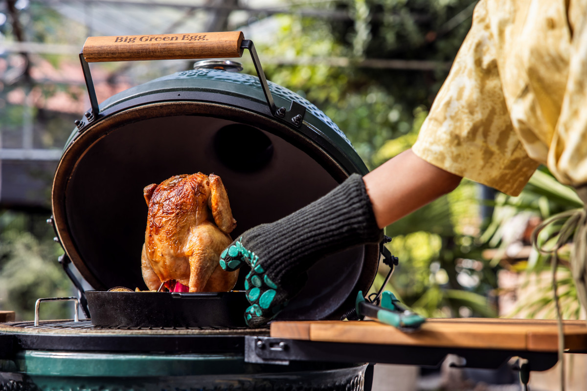 Big Green Egg Large to prawdziwie kompletne urządzenie do gotowania na zewnątrz. Szeroki zakres temperatur od 70 do 350°C pozwala na zastosowanie różnych technik kulinarnych. Niezależnie od tego, czy chodzi o wędzenie, pieczenie, grillowanie, wypiekanie czy gotowanie na parze – EGG poradzi sobie ze wszystkim.