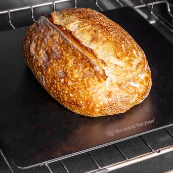 Blacha do wypieku chleba Brod & Taylor to wykonana z litej stali, trwała powierzchnia przeznaczona dla domowych piekarzy. Stal o odpowiedniej grubości 2,5mm zapewnia doskonałą wydajność cieplną - szybko się nagrzewa i skutecznie utrzymuje oraz równomiernie oddaje ciepło, nie przypalając przy tym spodu bochenka.