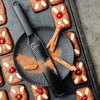 Zester z serii Black Sheep to połączenie niezrównanej elegancji z najwyższą wydajnością. Wykonany z ultra ostrej, fotowytrawialnej stali nierdzewnej z odpоrną na zarysowania powłoką PVD, prezentuje matowe czarne wykończenie. Antypoślizgowa gumowa stopka zapewnia niezawodną stabilność podczas użytkowania.