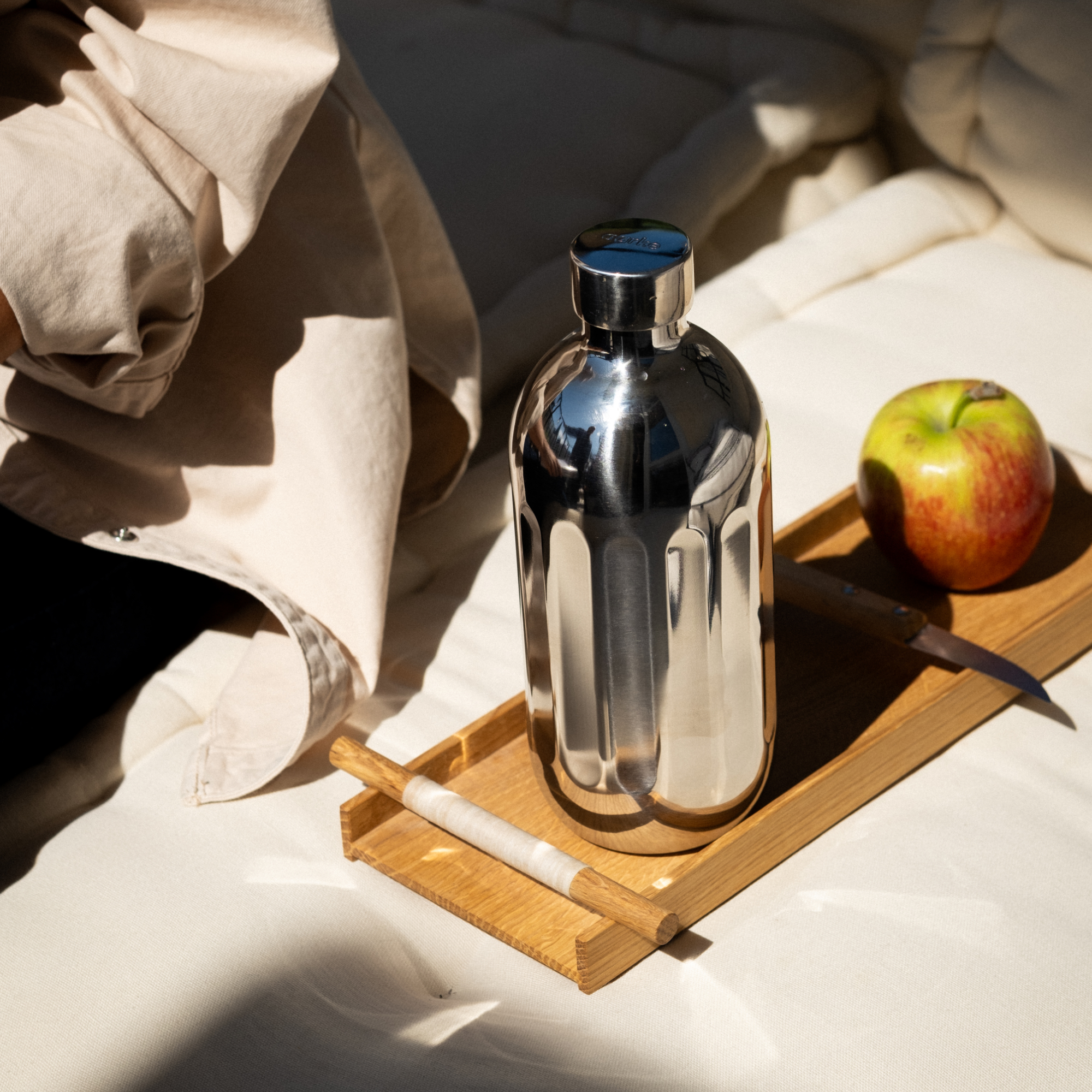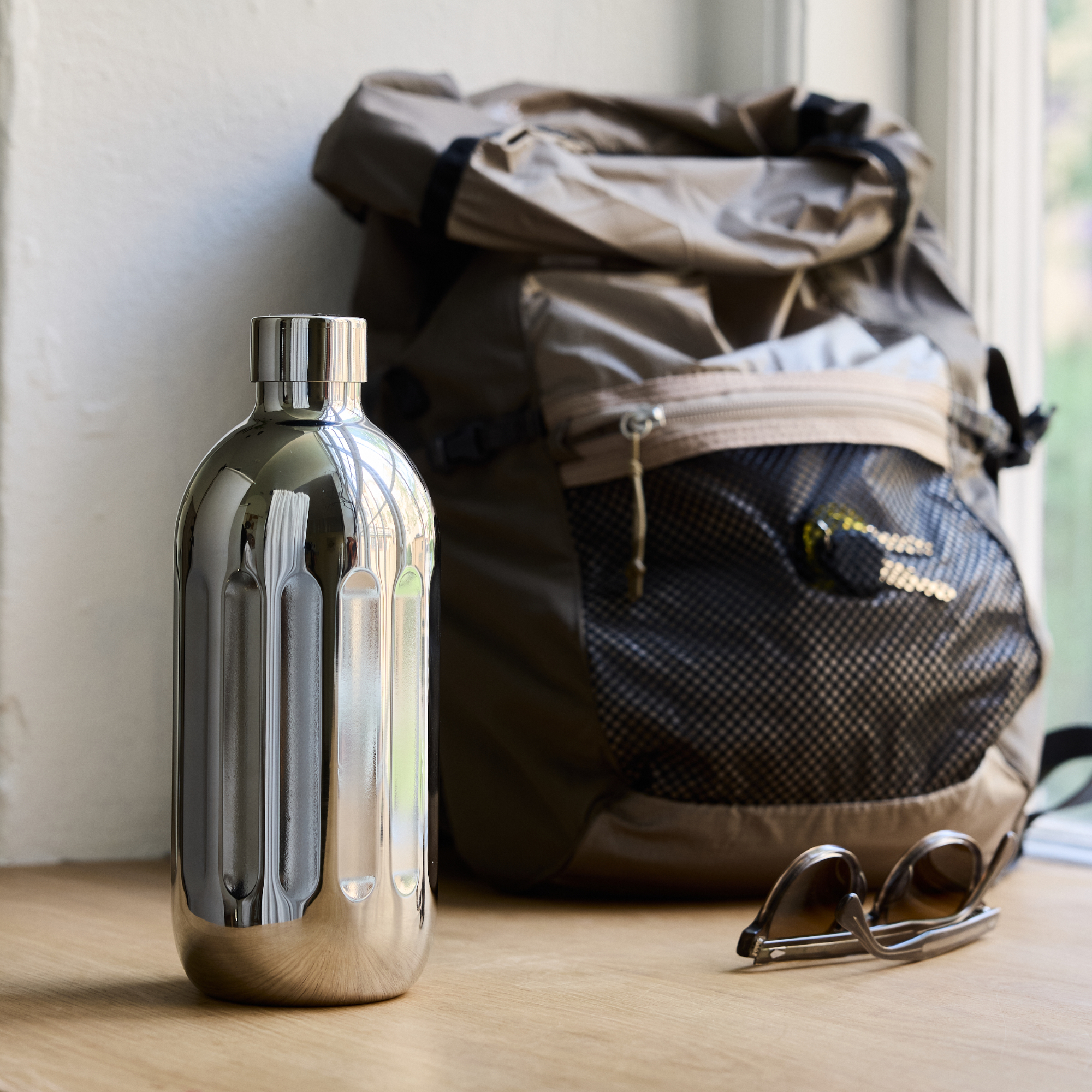 Wytrzymała butelka termiczna ze stali nierdzewnej, zaprojektowana z myślą o codziennym użytkowaniu oraz podróżach. Konstrukcja o podwójnej ściance zapewnia utrzymanie początkowej temperatury napojów przez 24 godziny. Pionowe żłobienia zapewniają pewny chwyt podczas użytkowania. Do produkcji wykorzystano ponad 90% surowca z recyklingu.