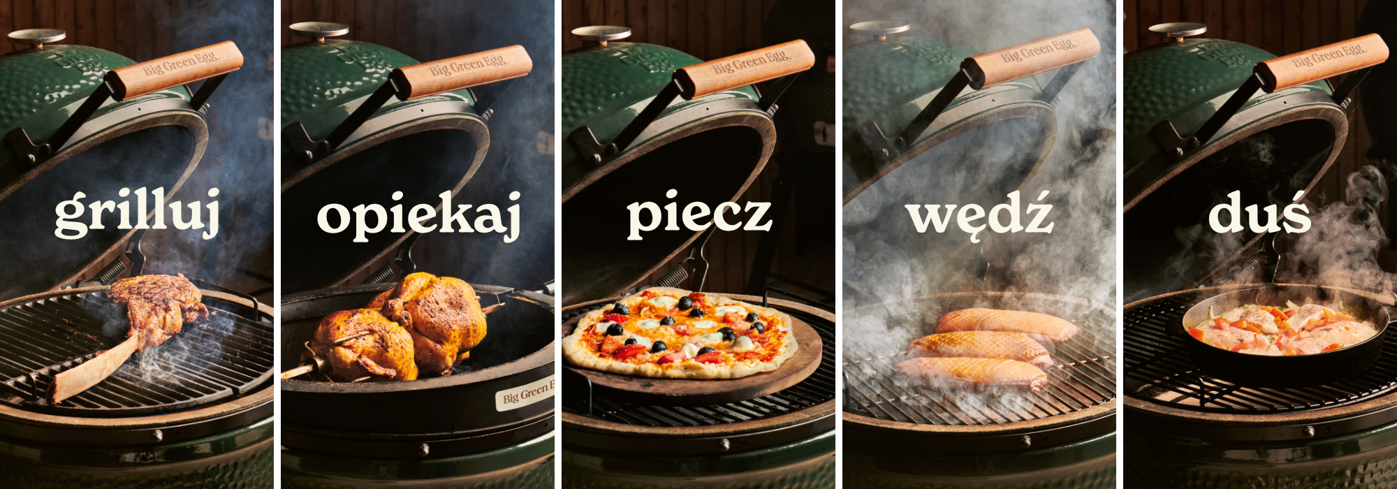 Wypiekanie chleba, pizzy lub ciast z Big Green Egg można opisać jako łatwe i przyjemne. Po włożeniu osłony termicznej – convEGGtora – urządzenie natychmiast zamienia się w piec konwekcyjny na węgiel drzewny. Dodanie kamienia do pizzy na ruszcie przekształca go w doskonały piec kamienny.