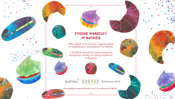 Startuje kolejny cykl, cieszących się popularnością w ubiegłym roku, słodkich warsztatów w cukierniach Batida w Warszawie. Partnerami akcji są: magazyn kulturalno-kulinarny KUKBUK oraz KitchenAid. Zaproszenia do uczestnictwa dystrybuowane będą wyłącznie wśród osób wyłonionych w konkursach ogłaszanych na KUKBUK-owym profilu na Facebooku. Poniżej migawki z kilku spotkań, ktore już się odbyły od początku roku. | ![]() |