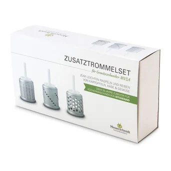 Zestaw trzech dodatkowych tarek bębnowych do maszynki do tarcia i szatkowania MVSA. W skład zestawu wchodzą: