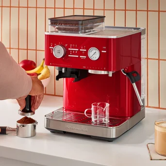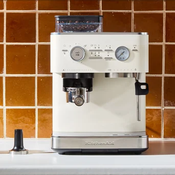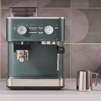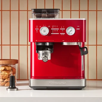 Półautomatyczny ekspres do kawy z najnowszej serii Espresso od KitchenAid zachwyca designem, bogatą gamą kolorów oraz cichą pracą i prostotą obsługi.