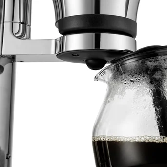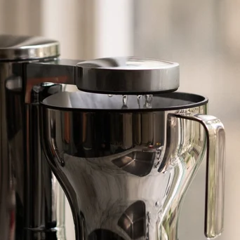 Zaprojektowana w celu uwydatnienia bogatego smaku bez gorzkiej nuty, dostosowuje moc w zależności od objętości wody i stopniowo obniża ją przez 40 minut. Aby oszczędzać energię, wyłącza się po usunięciu szklanego dzbanka.