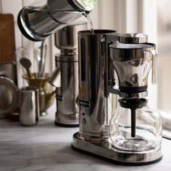 Ekspres przelewowy Aarke posiada certyfikat ECBC* i parzy pełny dzbanek w czasie poniżej 6 minut. Czujnik mierzy poziom wody w zbiorniku, aby zapewnić idealną temperaturę kawy, a okrągła głowica prysznicowa została zaprojektowana w celu optymalizacji smaku.
