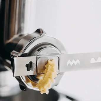 Foremka jest niezwykle prosta w obsłudze. Posiada specjalny uchwyt na tylnej stronie nakładki, który eliminuje konieczność używania tarcz perforowanych i noży w maszynce do mięsa. Masa przepływa płynnie i bez oporów.