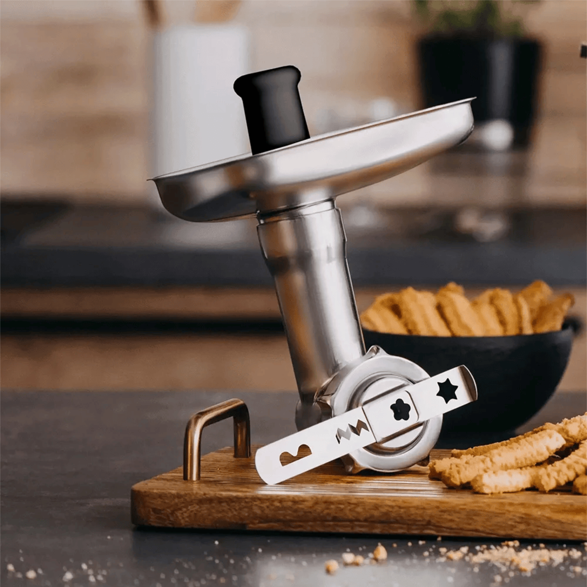 Foremka do ciasteczek nr 5 Kitty Professional służy do formowania ciastek wykrawanych. Wykonana ze stali nierdzewnej jest kompatybilna z maszynką do mięsa KitchenAid 5KSMFGA.