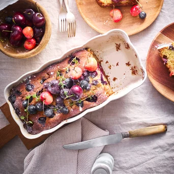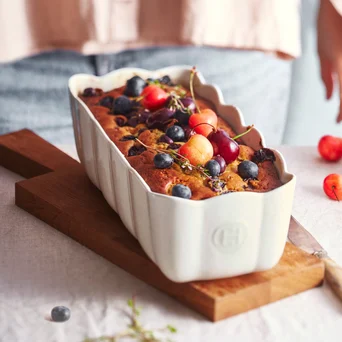 Forma do ciasta 27x13,5cm Emile Henry to eleganckie naczynie ceramiczne, które łączy tradycję domowego pieczenia z nowoczesną funkcjonalnością. Idealna do babek, ciast ucieranych, keksów, mazurków i potraw wytrawnych - pozwala tworzyć kulinarne arcydzieła godne podania na każdym stole.