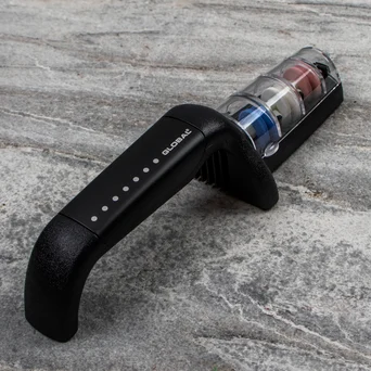 Ergonomiczna rączka długości czternastu centymetrów zapewnia pewny chwyt i pełną kontrolę nad procesem ostrzenia. Kompaktowe wymiary sprawiają, że ostrzałka nie zajmuje wiele miejsca w szufladzie. Przeznaczona jest do ostrzenia wszystkich rodzajów noży, z wyjątkiem jednostronnie szlifowanych.