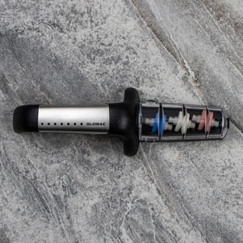 Ceramiczna ostrzałka wodna G-913/SB oferuje trzystopniowy system ostrzenia w jednym narzędziu. Niebieskie koło o grubym ziarnie służy do ostrzenia wstępnego – odświeża przytępione ostrza. Usuwa drobne uszkodzenia i przywraca właściwy kształt krawędzi tnącej. Białe koło o średnim ziarnie dopracowuje efekt ostrzenia, a koło różowe o drobnym ziarnie nadaje nożom gładkość i precyzję cięcia.