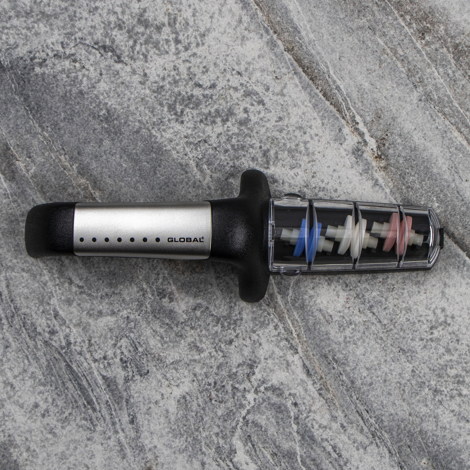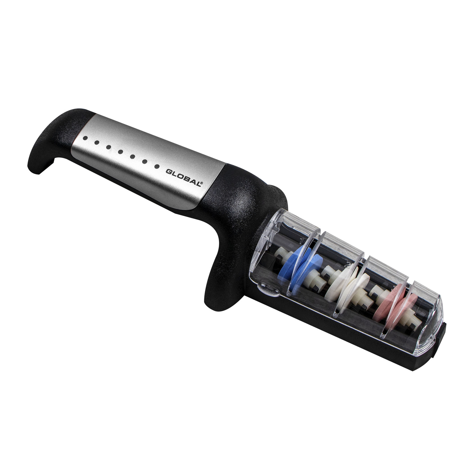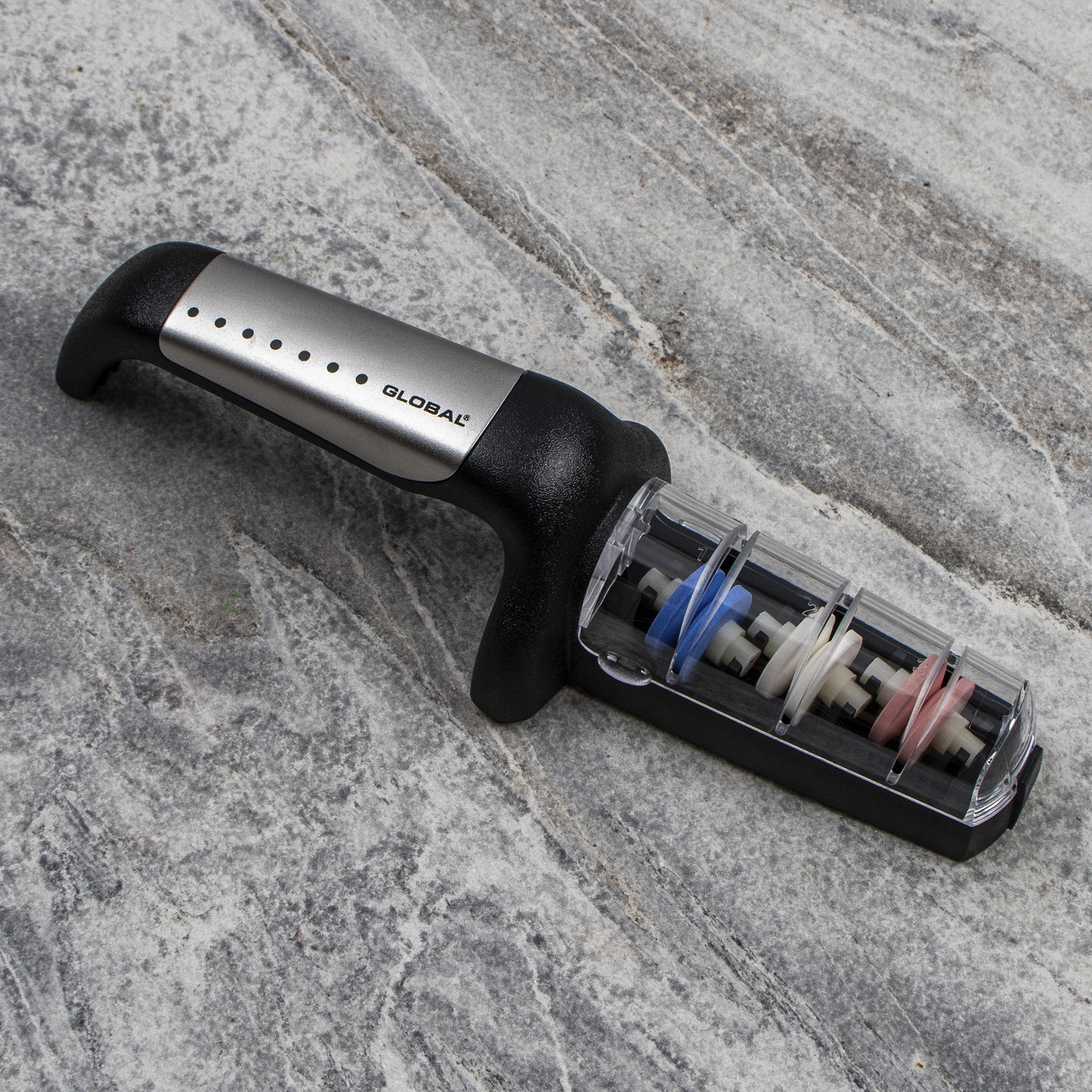 Ergonomiczna rączka długości czternastu centymetrów zapewnia pewny chwyt i pełną kontrolę nad procesem ostrzenia. Kompaktowe wymiary sprawiają, że ostrzałka nie zajmuje wiele miejsca w szufladzie. Przeznaczona jest do ostrzenia wszystkich rodzajów noży, z wyjątkiem jednostronnie szlifowanych.