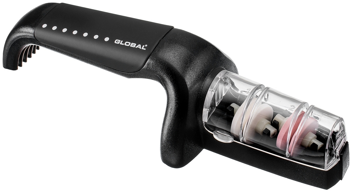 Zastosowanie ceramicznych elementów gwarantuje trwałość oraz zachowanie właściwości ostrzące przez lata użytkowania. Natomiast użycie wody podczas ostrzenia zapobiega przegrzaniu stali, chłodzi ostrze oraz oczyszcza powierzchnię kół. Gumowany uchwyt i podstawa mają właściwości antypoślizgowe.