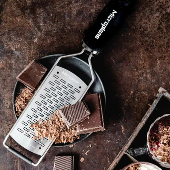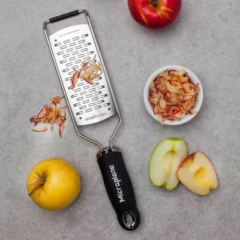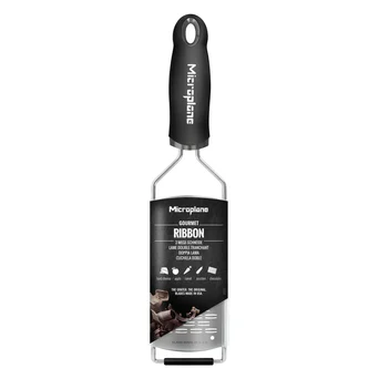 Tarka Ribbon z serii Gourmet to profesjonalne narzędzie kuchenne wyposażone w obszerną powierzchnię roboczą w kształcie łopatki oraz ultra ostre fotowytrawialne ostrze ze stali nierdzewnej produkowanej w USA. Konstrukcja zapewnia wyjątkową efektywność podczas szatkowania warzyw i serów w charakterystyczne wstążki. Solidna rama ze stali nierdzewnej gwarantuje niezwykłą trwałość, a miękki w dotyku uchwyt zapewnia komfort użytkowania. Antypoślizgowa stopka dodaje stabilności podczas pracy, czyniąc to narzędzie idealnym do przygotowywania dekoracyjnych dodatków do wypieków i dań gotowanych.