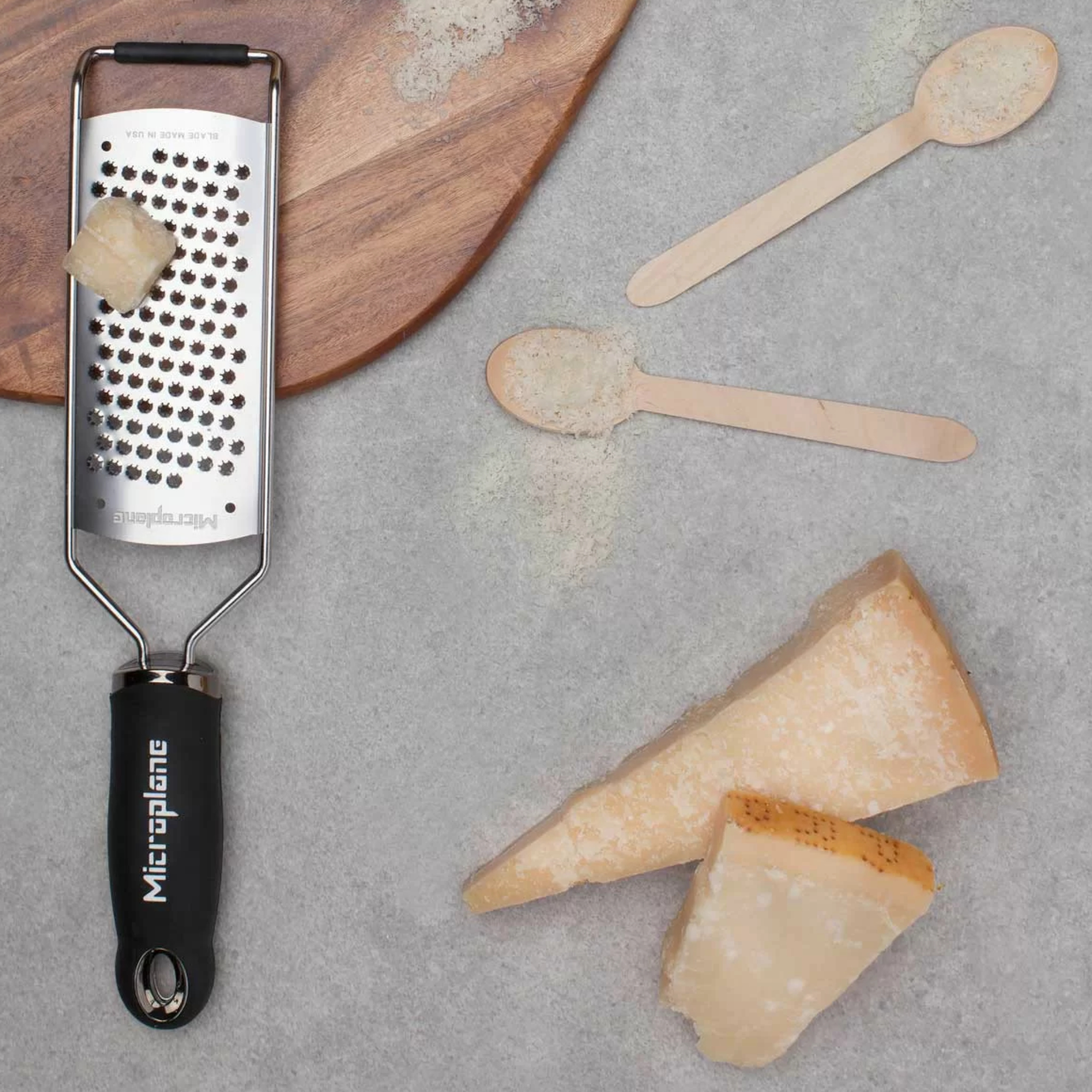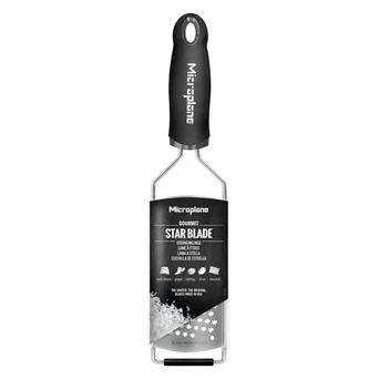 Tarka Parmesan Star z serii Gourmet to narzędzie kuchenne zaprojektowane z myślą o ulepszeniu gotowania i przygotowywania potraw. Łączy wyrafinowany design z niezrównaną wydajnością. Idealnie sprawdza się zarówno w rękach domowych kucharzy, jak i profesjonalnych szefów kuchni. Trwała konstrukcja ze stali nierdzewnej zapewnia stałą wydajność. Ultra ostre, fotowytrawialne ostrze typu "gwiazda" sprawia, że tarcie twardych serów, takich jak parmezan, staje się niezwykle efektywne. Zamienia zwarte kawałki sera w drobno tarte, puszyste kopczyki, które natychmiast podnoszą jakość ulubionych potraw.