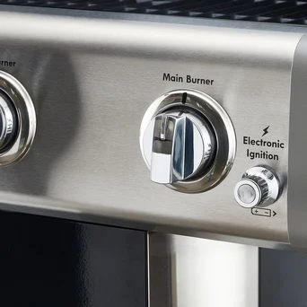 Wykonany w całości z grubej, wysokiej jakości stali jest trwały i solidny. Jego pokrywę wyposażono w czytelny termometr i wygodny uchwyt, a za precyzyjną kontrolę wielkości każdego z płomieni odpowiadają wygodne chromowane pokrętła.