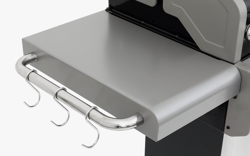 Dzięki składanym półkom bocznym grill zajmuje mniej miejsca podczas przechowywania, a przydatne haczyki na relingach sprawiają, że podczas grillowania wszystko znajduje się "pod ręką".
