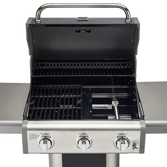 Dużą zaletą grilla 3-palnikowego Kenmore jest otwarta tylna ścianka korpusu, która umożliwia łatwy dostęp do butli gazowej. Model ten przystosowano do pracy z butlami o różnej wielkości (5 kg, 8 kg oraz 11 kg bez kołnierza).