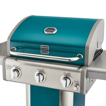 Grill gazowy 3-palnikowy uznanej amerykańskiej marki Kenmore kusi niespotykaną kolorystyką i wysoką jakością wykonania. Idealnie sprawdzi się na tarasie lub w przydomowym ogrodzie. Wyposażony w wydajne palenisko o łącznej mocy 9 kW i dwuczęściowy żeliwny ruszt, zapewnia idealną, równomierną dystrybucję ciepła i sprawia, że smaczne grillowanie nie stanowi najmniejszego wyzwania.