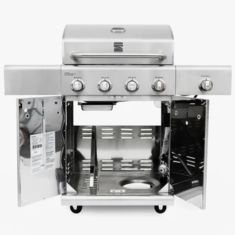 Dodatkowe atuty grilla Kenmore DeLuxe to zamykana szafka na butlę i akcesoria, taca ociekowa oraz skrętne kółka, dzięki którym przemieszczania grilla nie sprawia trudności.