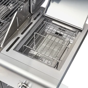 Wysoka trwałość, stabilność i słuszna waga tego modelu wynikają z użycia do jego konstrukcji grubej blachy ze stali nierdzewnej, z której wykonane są zarówno korpus, wózek, palniki, ruszty, jak i solidna pokrywa wyposażona w precyzyjny termometr.