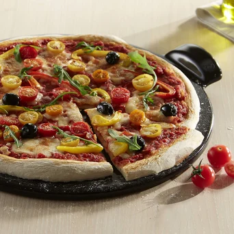 Ceramika ogniotrwała - Wykonany z wysokiej jakości ceramiki ogniotrwałej, kamień wytrzymuje wysokie temperatury i zapewnia równomierne rozprowadzanie ciepła, jak w tradycyjnych piecach. Naturalny materiał ceramiczny długo utrzymuje temperaturę, dzięki czemu pizza pozostaje gorąca przez cały posiłek. Wytrzymała powierzchnia pozwala na bezpośrednie krojenie jej na kamieniu bez ryzyka uszkodzenia.