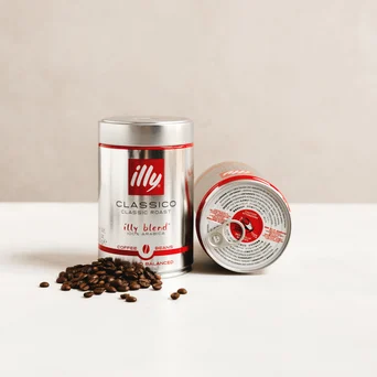 Kawa Classico illy pakowana jest pod ciśnieniem, dzięki czemu zachowuje cenne aromaty i olejki. Powietrze w puszce z kawą zastąpione jest obojętnym azotem pod wyższym ciśnieniem, przedłużające świeżość ziaren. Ta technika gwarantuje, że średnio palona kawa ziarnista illy zachowuje swój charakterystyczny smak i aromat przez dwa lata.