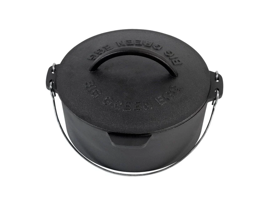 Żeliwny garnek do gotowania (Cast Iron Dutch Oven Big Green Egg) sprawdza się przy każdej technice kulinarnej. Doskonały do duszenia, gotowania zup, gulaszów i dań jednogarnkowych. Żeliwo równomiernie rozprowadza ciepło po całym garnku, a ciężka pokrywa zatrzymuje parę i wilgoć wewnątrz. Zapewnia wyjątkową soczystość i głębię smaku potraw.