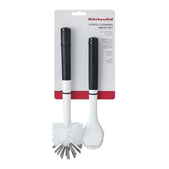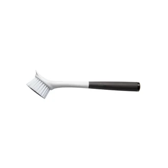 Nylonowe włosie obu szczotek jest wytrzymałe i bez problemu radzi sobie nawet z zaschniętymi zabrudzeniami, a jednocześnie jest bezpieczne dla szkła i powłok nieprzywierających. Pewny chwyt, nawet w mokrej dłoni, zapewniają ergonomiczne i miękkie w dotyku uchwyty. Produkt nadaje się do mycia w zmywarce.