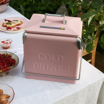 Wyróżniająca się wyglądem lodówka turystyczna w stylu retro amerykańskiej marki Permasteel idealnie sprawdzi się podczas upalnych dni na wycieczkach, piknikach lub w ogrodzie. Wygodny uchwyt, który zatrzaskując się w pionowej pozycji zamyka jednocześnie pokrywę. Z zewnątrz lodówka wykonana jest z metalu lakierowanego proszkowo w przyciągających uwagę kolorach. Wnętrze wykonano z tworzywa. Izolację zapewnia pianka, która szczelnie wypełnia przestrzeń między ściankami. Dodatkowy atut to zintegrowany otwieracz do butelek na zewnątrz lodówki.