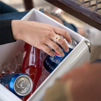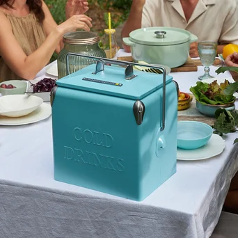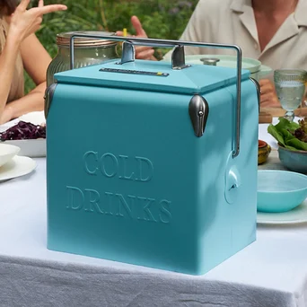Wyróżniająca się wyglądem lodówka turystyczna w stylu retro amerykańskiej marki Permasteel idealnie sprawdzi się podczas upalnych dni na wycieczkach, piknikach lub w ogrodzie. Wygodny uchwyt, który zatrzaskując się w pionowej pozycji zamyka jednocześnie pokrywę. Z zewnątrz lodówka wykonana jest z metalu lakierowanego proszkowo w przyciągających uwagę kolorach. Wnętrze wykonano z tworzywa. Izolację zapewnia pianka, która szczelnie wypełnia przestrzeń między ściankami. Dodatkowy atut to zintegrowany otwieracz do butelek na zewnątrz lodówki.