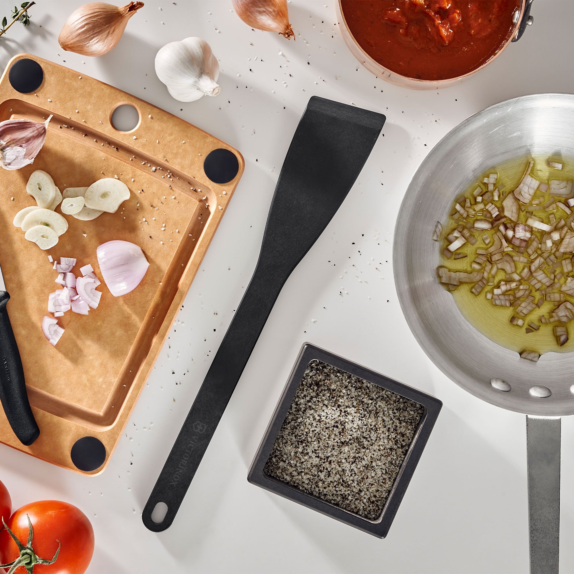 Łopatka skośna Victorinox to wszechstronne narzędzie kuchenne, które doskonale sprawdza się przy mieszaniu, przewracaniu i podsmażaniu. Wykonana z wyjątkowo trwałego materiału kompozytowego na bazie papieru, łączy w sobie estetykę i odporność na intensywne użytkowanie. Dzięki swojej gładkiej powierzchni jest łatwa do czyszczenia i bezpieczna dla powłok nieprzywierających – nie rysuje patelni. To praktyczne i eleganckie akcesorium, które odmieni codzienne gotowanie. Nadaje się do mycia w zmywarce.