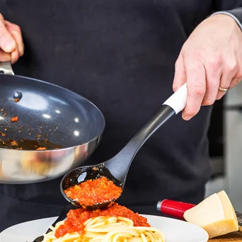 Łyżka kuchenna do mieszania wykonana z tworzywa odpornego do temp. 232°C. Nie rysuje naczyń z powłokami nieprzywierającymi. Wyposażona w wygodny uchwyt. Można myć w zmywarce.