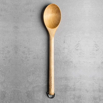Łyżka kuchenna wykonana z trwałego drewna brzozowego. Idealna do mieszania i nakładania. Długi, wygodny uchwyt z uszkiem do zawieszenia ze stali nierdzewnej. Bezpieczna dla wszystkich powłok nieprzywierających. Mycie wyłącznie ręczne, które zapewnia długotrwałe użytkowanie.