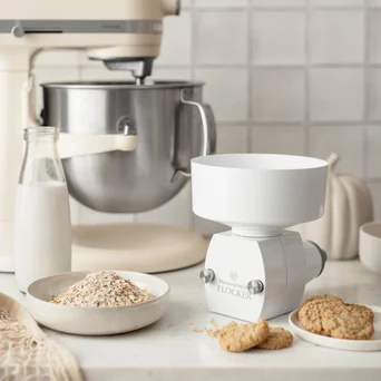 Przetwarza na płatki każde oczyszczone ziarno, poczynając od delikatnego spłaszczania, a kończąc na cieniutkich płatkach. Przy niewielkim wysiłku możesz dodać do swoich posiłków cenne witaminy, minerały i błonnik. Za pomocą maszynki FLME można przetwarzać: