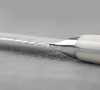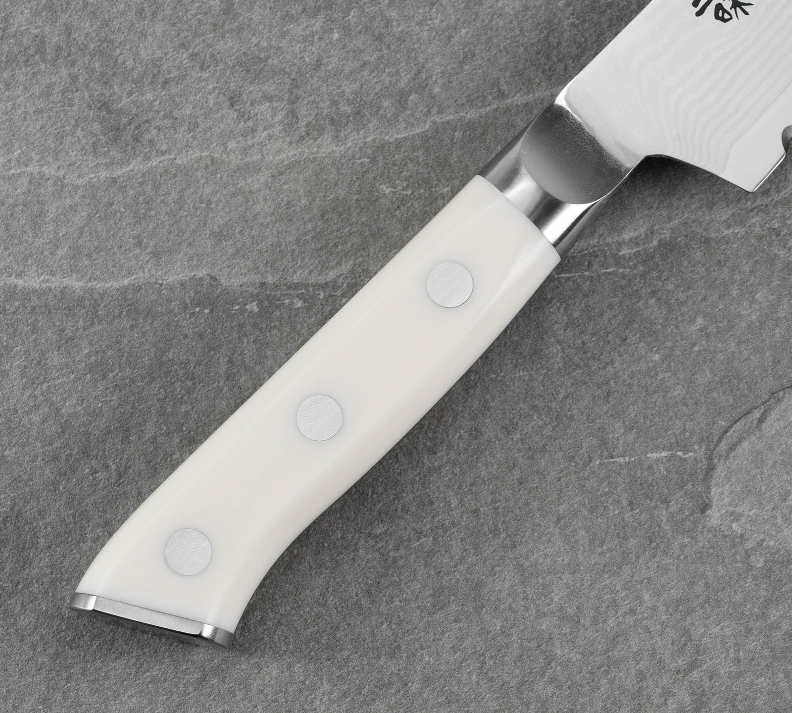 Rdzeń wykonany jest ze stali nierdzewnej VG-10 okutej 33 warstwami stali damasceńskiej. Zaawansowana technologia produkcji polegająca na laserowym wycinaniu gwarantuje perfekcyjne wykończenie ostrza. Twardość 60-61 HRC zapewnia zachowanie ostrości znacznie dłużej niż w standardowych nożach kuchennych.