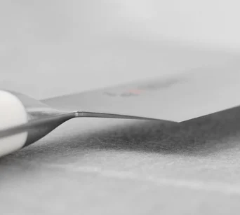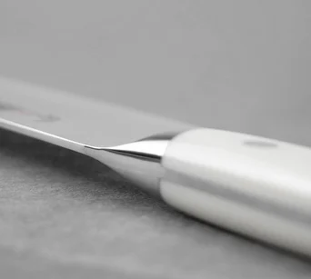 Rdzeń wykonany jest ze stali nierdzewnej VG-10 okutej 33 warstwami stali damasceńskiej. Zaawansowana technologia produkcji polegająca na laserowym wycinaniu gwarantuje perfekcyjne wykończenie ostrza. Twardość 60-61 HRC zapewnia zachowanie ostrości znacznie dłużej niż w standardowych nożach kuchennych.