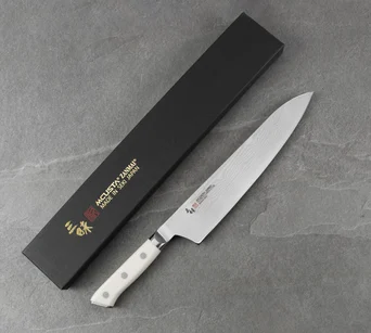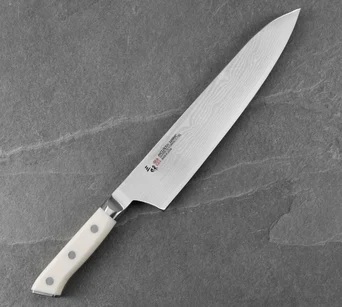 Nóż szefa kuchni Mcusta Zanmai Classic Damascus o długości 21 cm to profesjonalne narzędzie przeznaczone do zaawansowanych operacji kulinarnych. Wydłużone ostrze zapewnia większą powierzchnię roboczą, umożliwiając efektywne porcjowanie większych kawałków mięsa, krojenie warzyw oraz precyzyjne filetowanie.