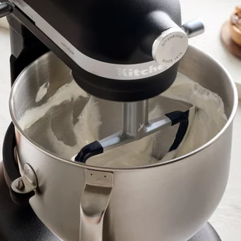Mieszadło z dwiiema silikonowymi listewkami, które zgarniają składniki ze ścianek i dna dzieży, co pozwala na dokładne połączenie wszystkich składników. Mieszadło idealne do przygotowywania ciast ucieranych, mas sernikowych, puree ziemniaczanego itp.